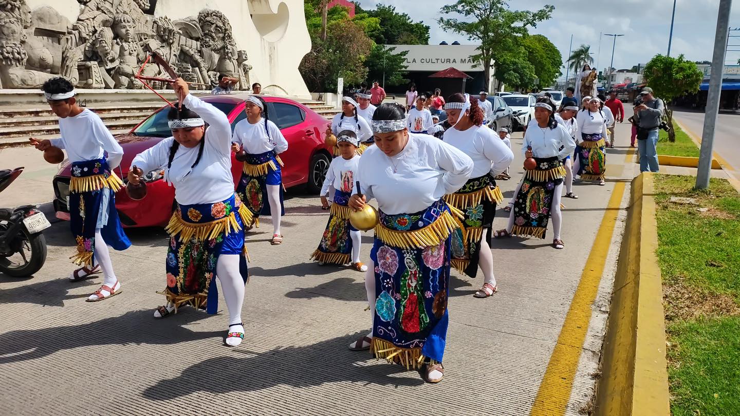 CHETUMAL, Quintana Roo, 13 de julio de 2025.- Las festividades en honor a la Virgen del Carmen de Chetumal continúan y este domingo se llevó a cabo la segunda procesión en su honor. Desde la comunidad de Luis Echeverria del municipio de Othón P. Blanco llegaron al Santuario de Nuestra Señora de Guadalupe alrededor de 35 personas que integran la Danza de los Matachines para honrar a Nuestra Señora del Carmen.