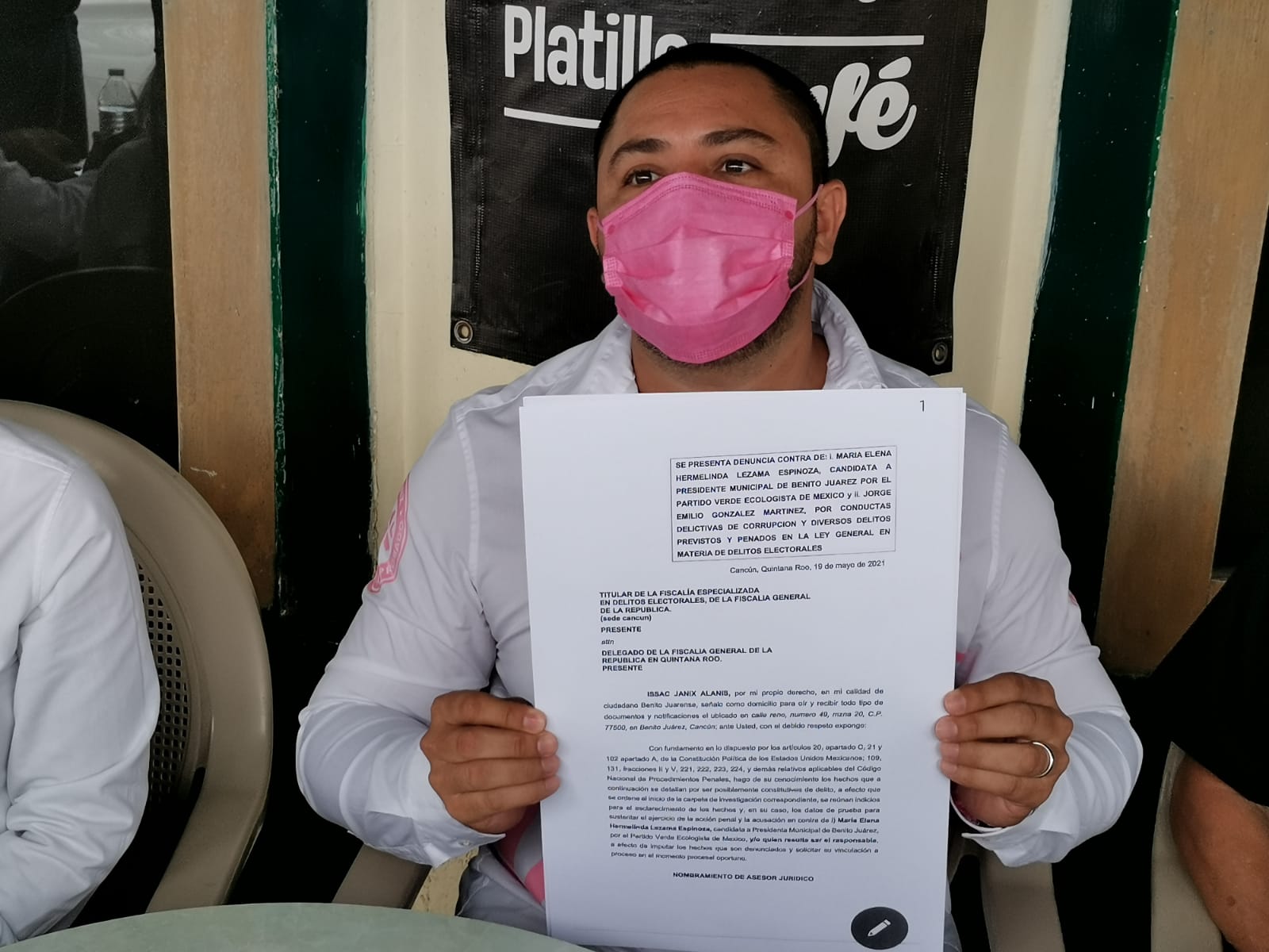 CANCÚN, Quintana Roo, 20 de mayo.- El candidato a la presidencia Municipal por el partido Fuerza por México, Issac Jánix Alanís, dio a conocer la mañana de este jueves que denunció ante la Fiscalía General del Estado (FGE) a la candidata del partido Verde Ecologista, Mara Lezama Espinosa, por la adjudicación del predio ubicado en la zona exclusiva Puerto Cancún, mejor conocida como la “Casa Blanca”, donde presuntamente están involucrados la alcaldesa y Jorge Emilio González.