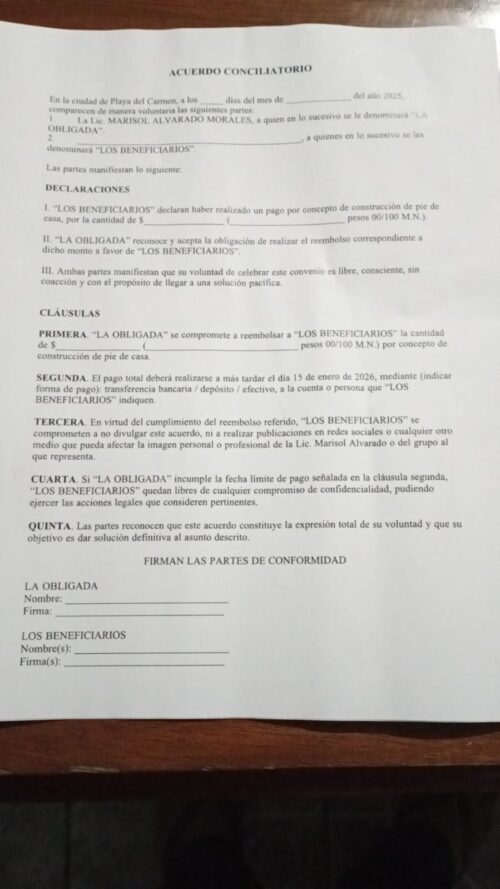 Ante la tardanza, “le solicitamos a la señora Marisol que nos regresara nuestro dinero desde hace más de dos meses, pero nos dice que tengamos paciencia y nos quiere obligar a firmar un documento en el que ella se deslinda de todo compromiso”, coinciden en señalar las tres hermanas.