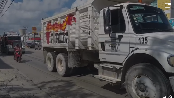 CANCÚN, Quintana Roo, 24 de noviembre. – Volqueteros se manifestaron con una caravana de 20 unidades que comenzó en la zona oriente de la ciudad y llegó a la zona centro de Cancún, molestos por la “persecución” que dicen emprendieron las autoridades,