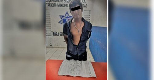 En esta ocasión Jonathan Ambrosio “N” de 28 años de edad, originario de Chetumal fue detenido por dejar una cartulina que contenía mensajes amenazantes en contra de la propietaria de una frutería ubicada en el fraccionamiento la Toscana de esta ciudad.