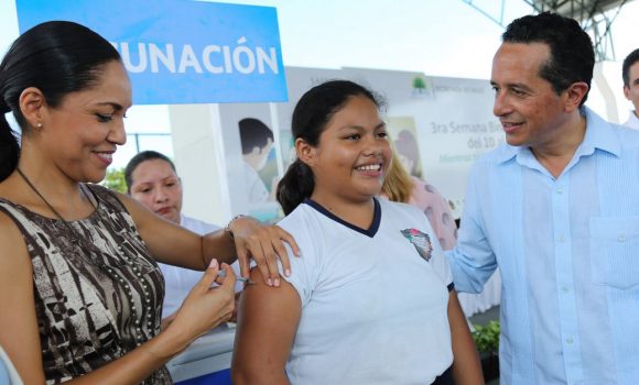 “Necesitamos hombres y mujeres del mañana sanos de cuerpo y alma, para tener una sociedad más sana, incluyente, solidaria y confiable”, refirió el Gobernador, quien junto con su esposa y presidenta del Sistema para el Desarrollo Integral de la Familia (DIF), Gabriela Rejón de Joaquín, dieron testimonio de la aplicación de las primeras cuatro dosis de las vacunas que serán administradas a los infantes de Quintana Roo y Belice del 10 al 14 de octubre.