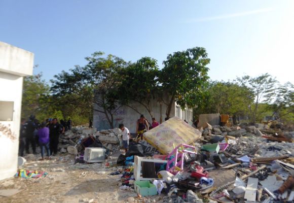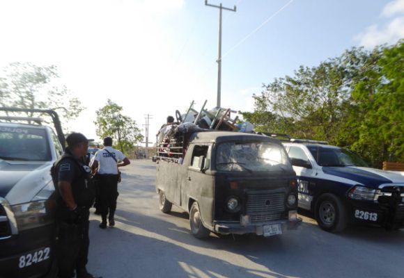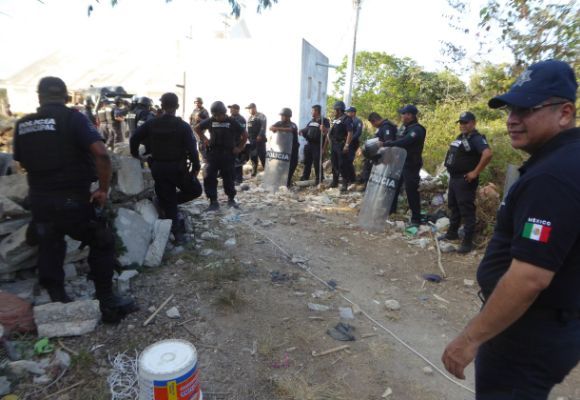 PLAYA DEL CARMEN, Quintana Roo, 9 de abril.- Dos policías descalabrados, así como 5 personas detenidas entre estas dos mujeres, fue el saldo de un operativo implementado la tarde del domingo por la dirección de Seguridad Pública, para desalojar a un grupo de personas, quienes intentaron invadir una extensa franja de tierra ubicada sobre la calle 17 sur con 150 de la colonia Bellavista.