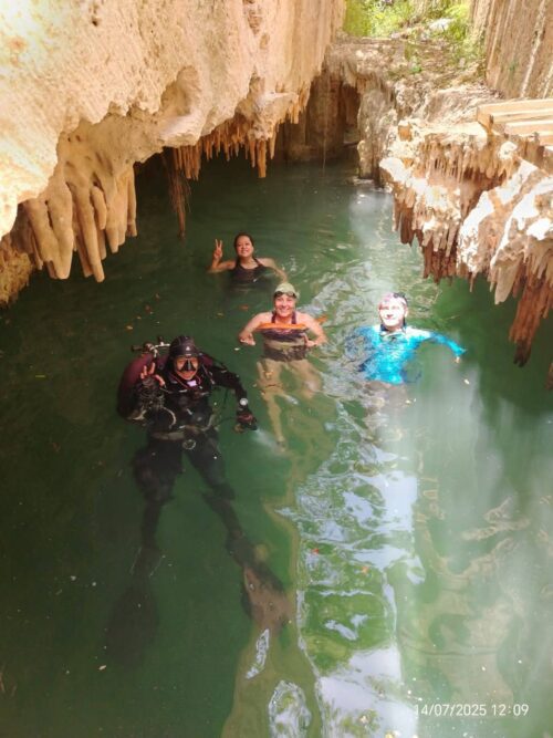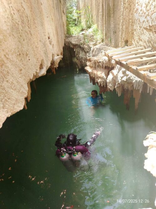 Durante una primera inmersión realizada por la buza Olinka, también voluntaria del proyecto, se detectaron al menos dos posibles continuaciones subacuáticas. Sin embargo, por protocolos de seguridad en buceo de cuevas, será necesario regresar con otro buzo para poder explorar estas interconexiones con mayor profundidad y avanzar en el mapeo del sitio.