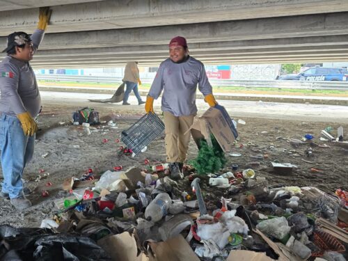 PLAYA DEL CARMEN, Quintana Roo, 15 de enero de 2026.– La Secretaría de Servicios Públicos Municipales de Playa del Carmen llevó a cabo el desmantelamiento de campamentos improvisados instalados por personas en situación de calle en los bajos puentes de la carretera federal 307, a la altura de la calle 66 Norte, debido a la acumulación excesiva de basura, focos de contaminación, mala imagen urbana y riesgos para la seguridad.