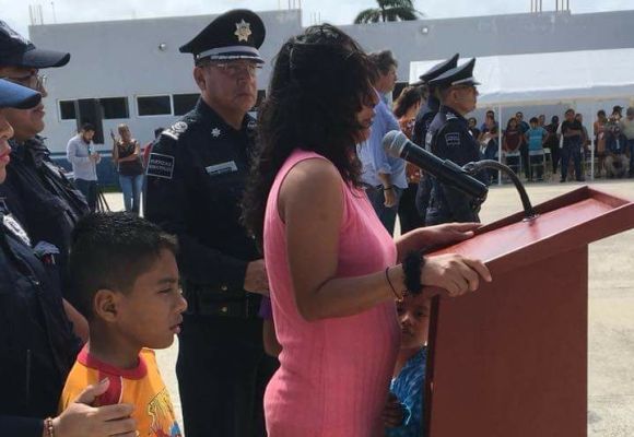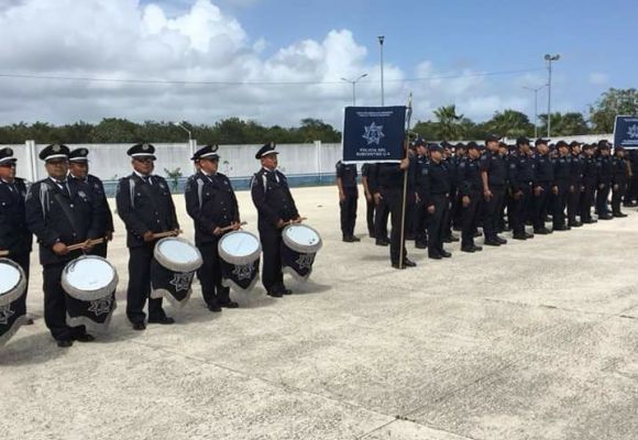 PLAYA DEL CARMEN, Quintana Roo, 23 de Febrero.- Con la presencia de directores, subdirectores y tropa de la dirección general de seguridad pública así como algunos regidores del municipio, se llevó a cabo una ceremonia para despedir al policía Carlos Mario Sánchez, abatido ayer a balazos frente a la escuela Primaria Adolfo Cisneros Cámara.