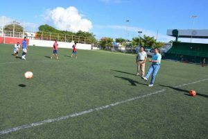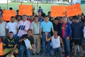 La fiesta futbolera, convocó a una decena de equipos y a invitados especiales, entre los que destacó Miguel Ramón Martín Azueta, ex alcalde de Solidaridad y actualmente Jefe de la Oficina del Gobernador Carlos Joaquín González, quien a nombre del mandatario estatal, obsequió 200 pavos a los participantes.
