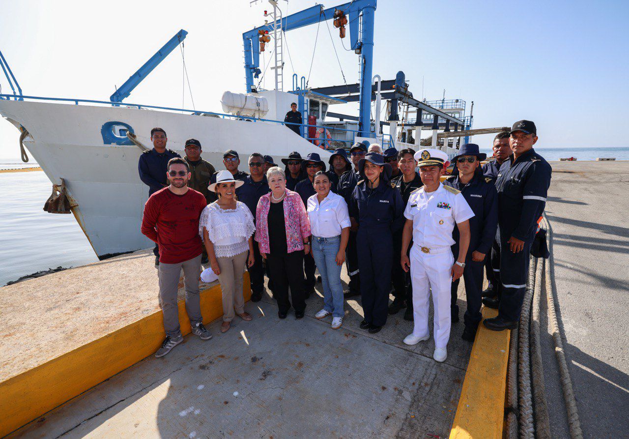 Blanca Merari recordó también que durante este año se contó con la visita de la titular de la Secretaría de Medio Ambiente y Recursos Naturales (Semarnat), Alicia Bárcena, quien junto con la gobernadora verificó las acciones realizadas por la Marina con los buques sargaceros y embarcaciones menores, que permiten la recolección de la macroalga tanto en mar abierto como en aguas someras.