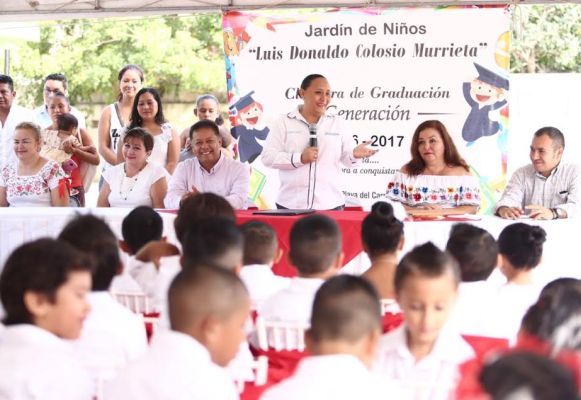 PLAYA DEL CARMEN, Quintana Roo, 29 de Junio.- “El esfuerzo y trabajo diario de padres de familia, en conjunto con las acciones del Gobierno Municipal, están destinados a la atención de la niñez de Solidaridad porque ellos son la clave para recuperar la grandeza de nuestro municipio”, señaló la Presidenta Municipal de Solidaridad, Cristina Torres Gómez, durante la ceremonia de graduación de 74 alumnos del Jardín de Niños “Luis Donaldo Colosio Murrieta” del fraccionamiento El Petén.