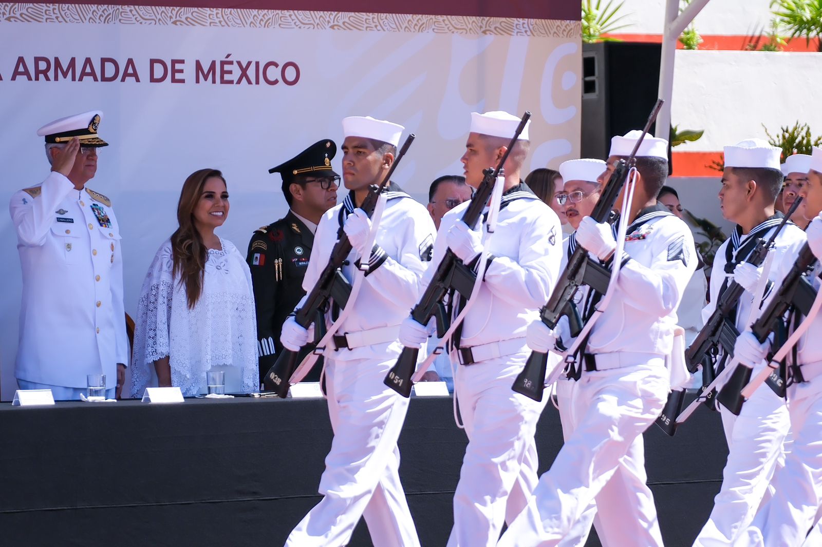 ISLA MUJERES, Quintana Roo, 23 noviembre. – En nombre de todas y todos los quintanarroenses, la gobernadora Mara Lezama Espinosa felicitó a cada integrante de la Armada de México en ocasión del 198 aniversario de su creación, conmemoración que se realizó en el mando naval de esta isla.