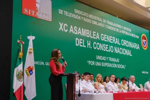 Cancún, 17 de marzo de 2026- En el marco de la XC Asamblea General Ordinaria del Sindicato Industrial de Trabajadores y Artistas de Televisión y Radio (SITATYR), la gobernadora Mara Lezama invitó a las y los asistentes a fortalecer la labor informativa de los medios de comunicación con un enfoque ético, responsable y cercano a la sociedad.