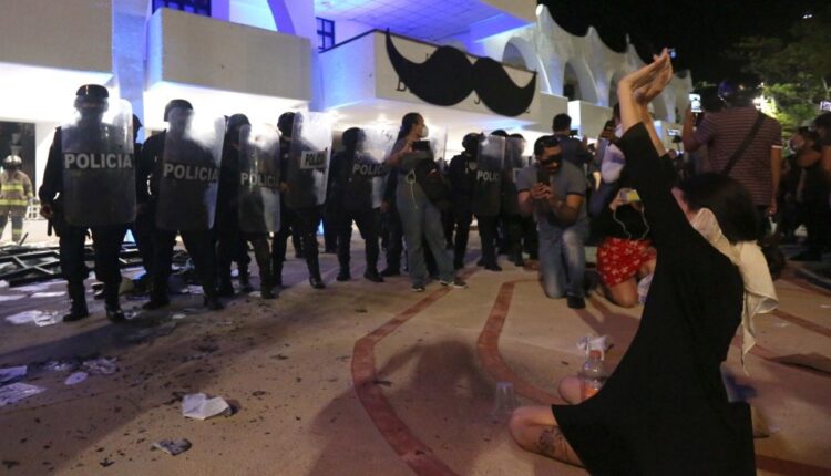 Tras manifestarse frente a la vicefiscalía General del Estado, la marcha, de unos 2 mil manifestantes, que protestaban en contra de los feminicidios en el estado de Quintana Roo, llegó hasta el Palacio Municipal de Cancún, donde fueron reprimidos a tiros.