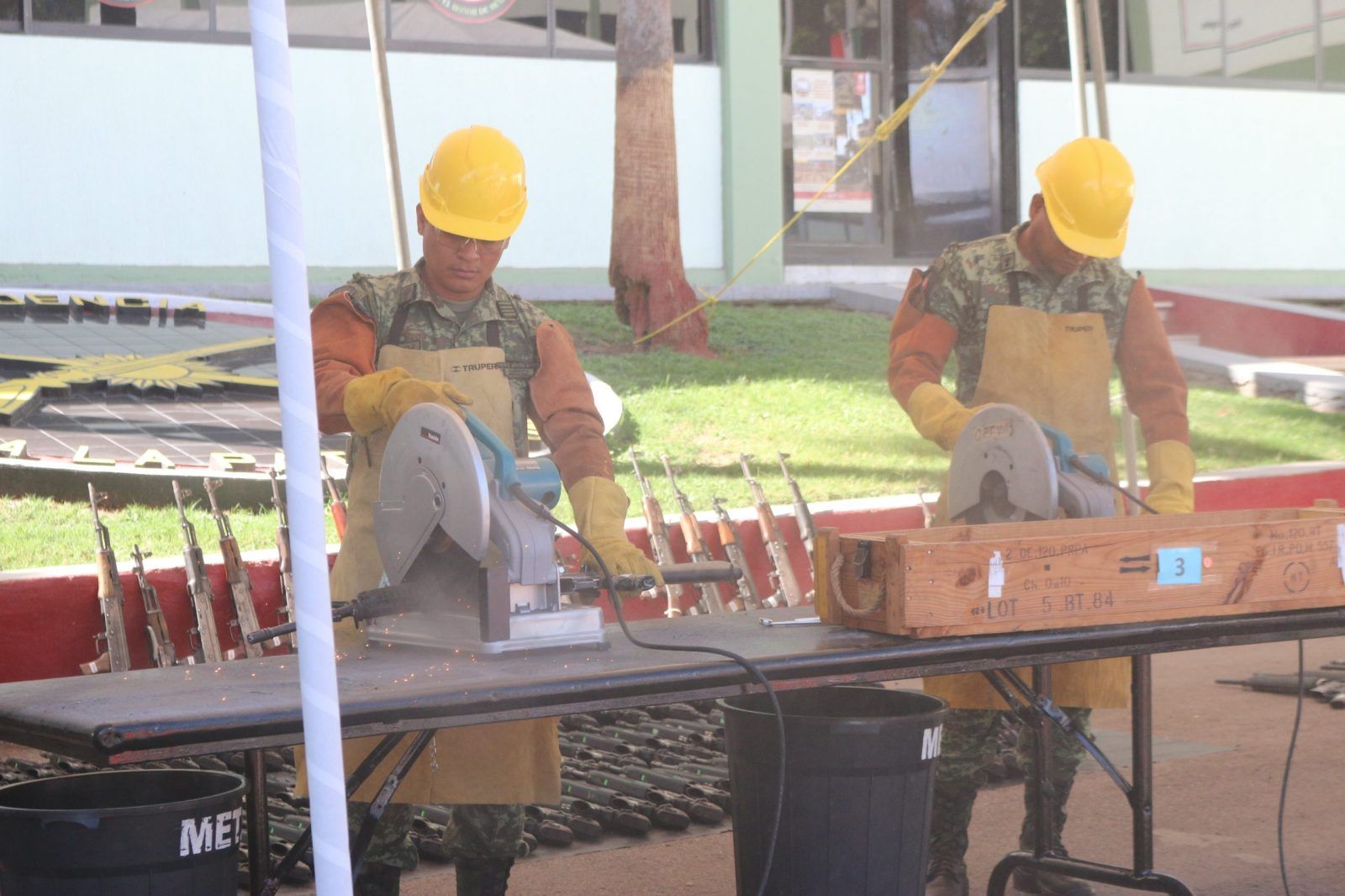 Personal de la Secretaría de la Defensa Nacional (Sedena) destuyó armas de fuego, cartuchos útiles y cargadores decomisados por autoridades de Sinaloa en distintos operativos.