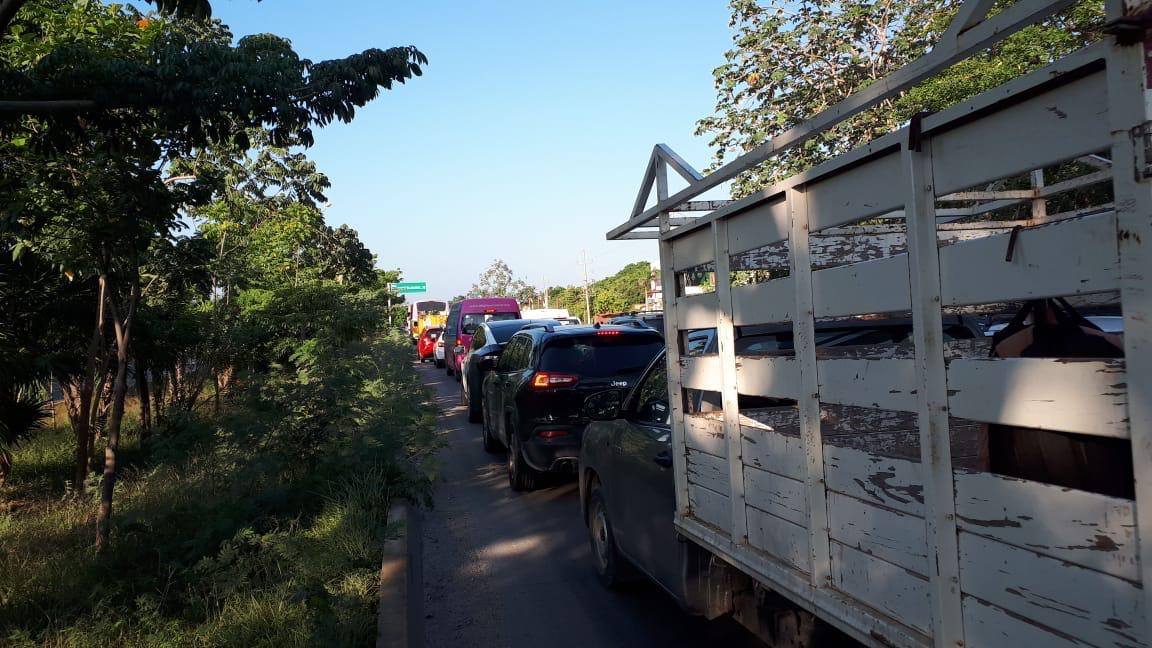 La medida, provocó una larga fila de vehículos circulando a baja velocidad en el carril que va de sur a norte toda vez que cerraron de manera parcial uno de los carriles para utilizar una grúa que se llevará a los piratas.