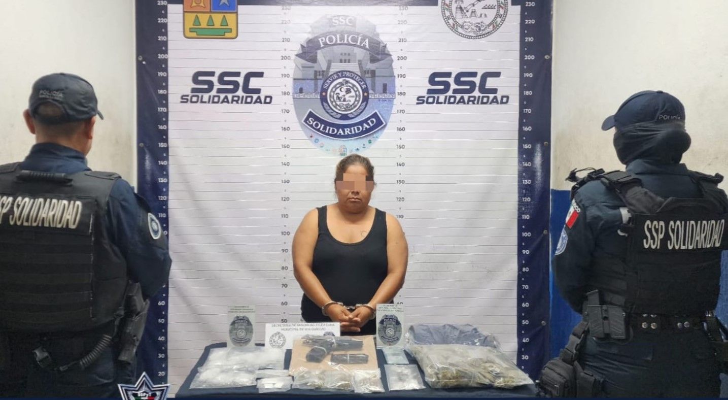 PLAYA DEL CARMEN, Quintana Roo, 04 de agosto. – En un operativo de vigilancia, la Policía Municipal de Solidaridad aseguró a una mujer en posesión de más de 80 envoltorios de posibles narcóticos, un arma de fuego y cartuchos en el fraccionamiento Villas del Sol.