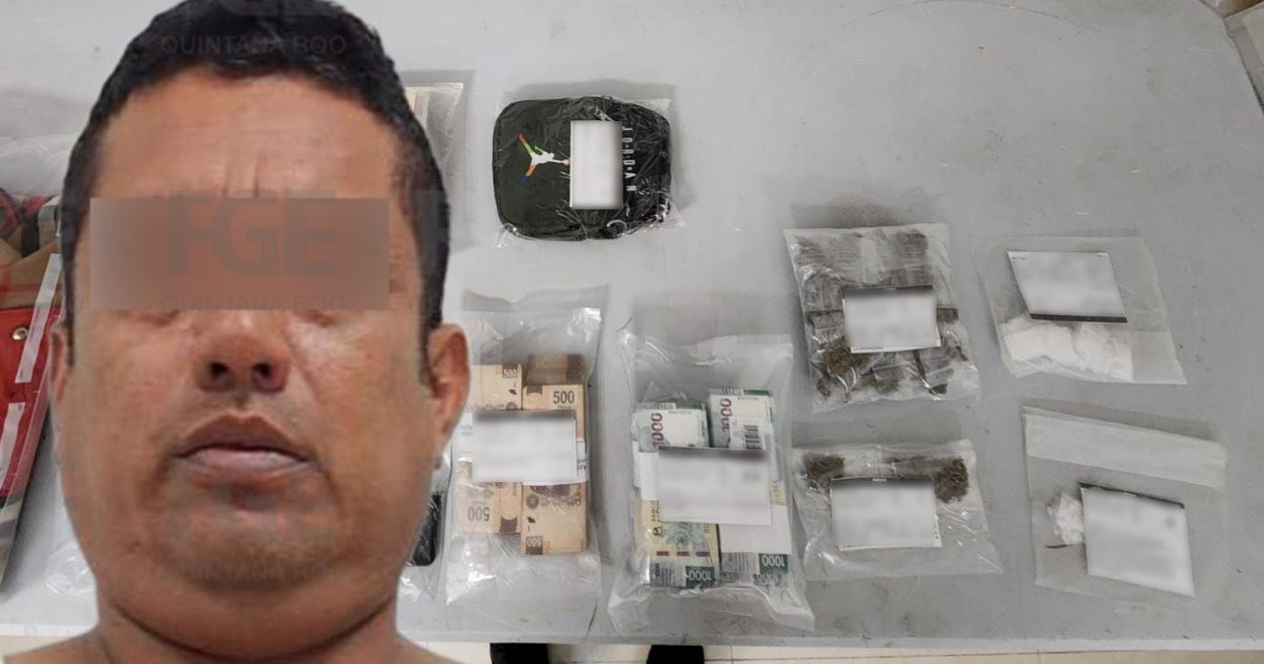Tras revisar sus pertenencias, los agentes encontraron un millón 200 mil pesos, dinero del que el imputado no pudo justificar su procedencia; asimismo, esta persona estaba en posesión de drogas conocidas como cristal y marihuana.