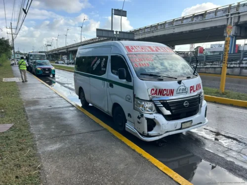 PLAYA DEL CARMEN, Quintana Roo, 21 de enero de 2026.– Un accidente vial se registró la mañana de este miércoles en el bulevar de Playa del Carmen, luego de que el conductor de un vehículo particular se incorporara sin precaución a la rotonda y se atravesara al paso de una combi de transporte foráneo, provocando un choque que dejó daños materiales en ambas unidades.