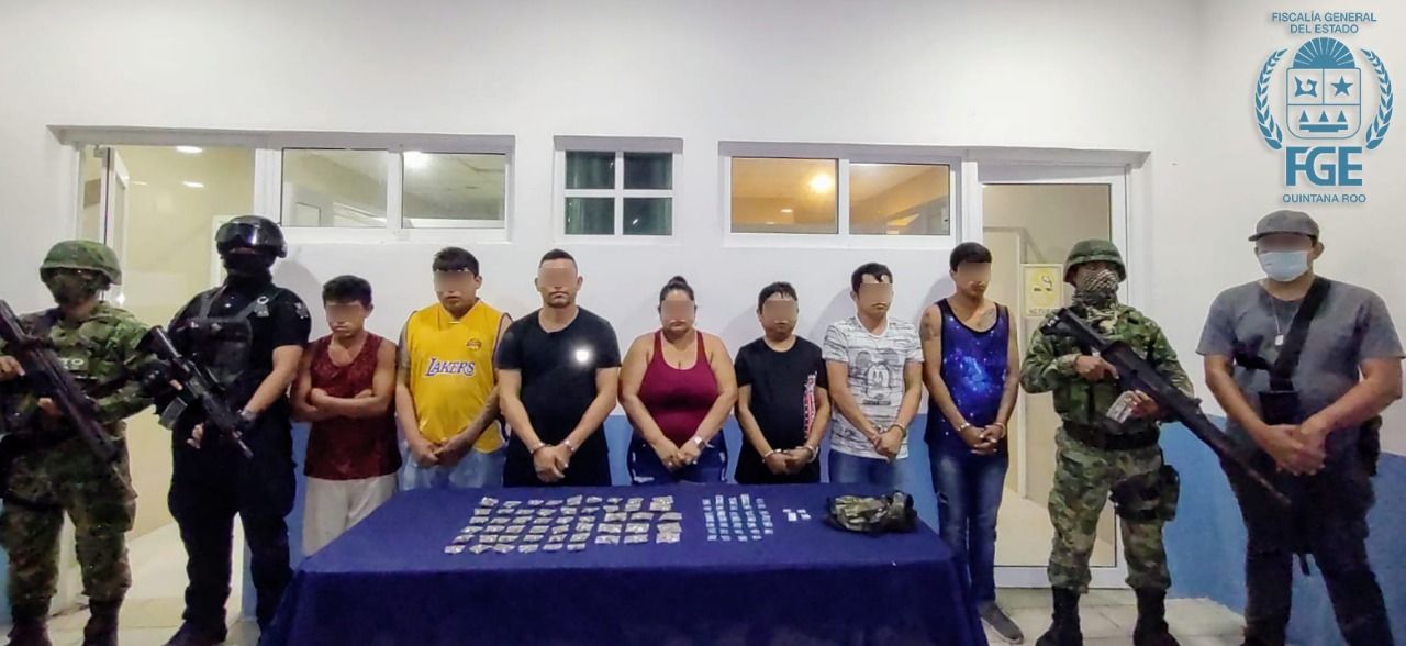 TULUM, Quintana Roo, 29 de octubre.- Como resultado de trabajos de campo y gabinete y través de distintas acciones en el Municipio de Tulum, la Fiscalía General del Estado de Quintana Roo apoyados por el Grupo de Coordinación para la Construcción de la Paz y Seguridad conformado por Policía Quintana Roo, SEDENA, MARINA, Guardia Nacional, cumplimentaron órdenes de cateos en tres inmuebles y aseguraron a 15 personas, diversas cantidades y tipos de estupefacientes y 123 casquillos 9 milímetros.