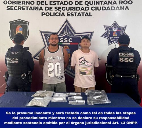CANCÚN.-En recorridos de vigilancia, elementos del Grupo de Investigación de la Secretaría de Seguridad Ciudadana observaron a dos personas del sexo masculino parados a la altura de la cajuela de un vehículo gris, intercambiando bolsitas de plástico con aparente marihuana.