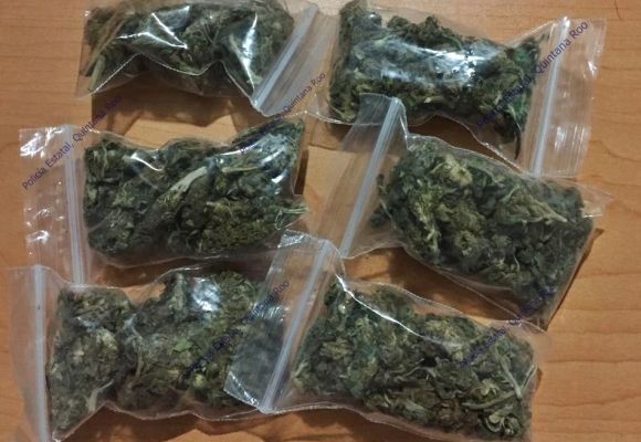 Y que no obstante, el conductor intentó darse a la fuga por lo que los agentes policiales le dieron alcance a la unidad en la calle Othón P. Blanco y al descender el chofer se percibió que tenía aliento alcohólico y viajaba con cuatro personas más por lo que se solicitó apoyo mediante el 9-1-1 y se inició la inspección de seguridad al vehículo, encontrando en la guantera una bolsa plástica de color blanco con seis bolsas transparente tipo Ziploc y en su interior vegetal verde, seco, con las características de la marihuana.