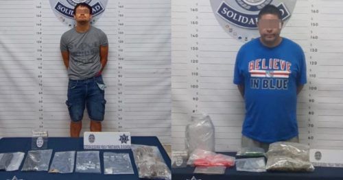 PLAYA DEL CARMEN, Quintana Roo, 12 de diciembre. – Dos sujetos y lo que parecen ser narcóticos fueron asegurados por policías de la Secretaría de Seguridad Pública y Tránsito Municipal de Solidaridad durante las labores permanentes de vigilancia en el marco del Operativo Invernal 2022, en conjunto con autoridades de los tres órdenes de gobierno.