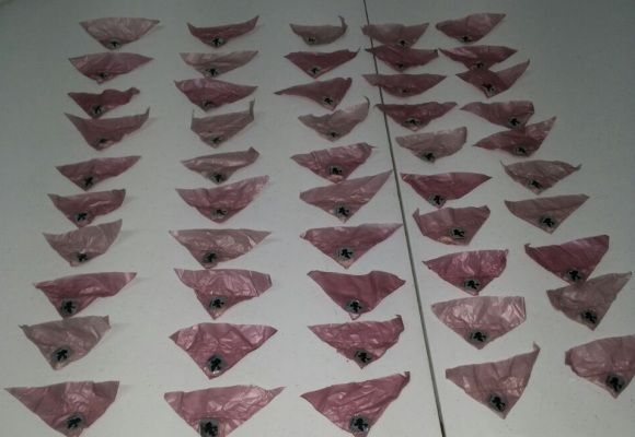 Además de la bolsa con hierba seca se halló dentro de la guantera del vehículo un envoltorio que contenía 50 bolsitas y cada una de ellas con una sustancia color beige con las características de la cocaína en piedra.