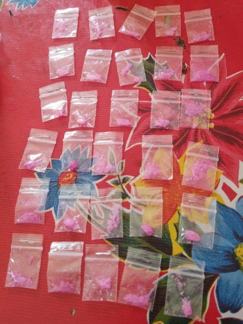 Policías de Investigación, aseguraron una bolsa con 30 bolsas con cierre hermético con sustancias tóxicas similares a droga sólida de color rosado y otros indicios relacionados con la venta de suministro de estupefacientes.
