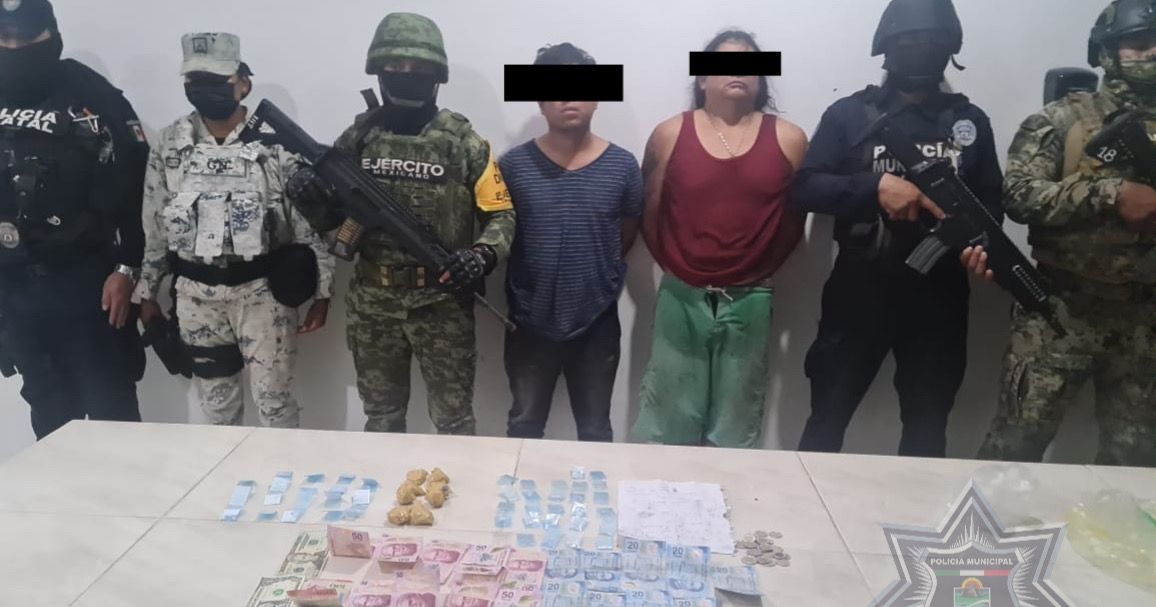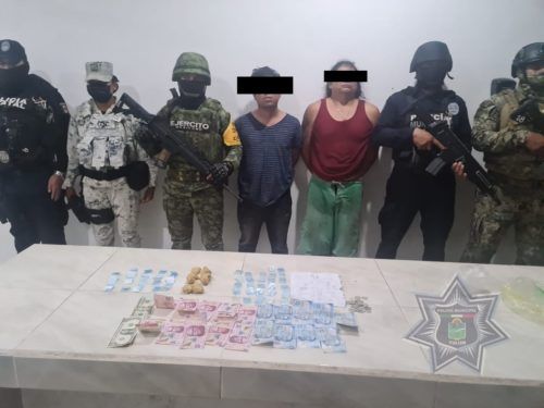 TULUM, Quintana Roo, 04 de febrero. – Este viernes se realizó un operativo de los tres niveles de gobierno, en la calle Tejón entre las avenidas Selva y Yaxchen, fueron asegurados dos presuntos narco menudistas a quienes les incautaron varias dosis de distintas drogas y dinero en efectivo.