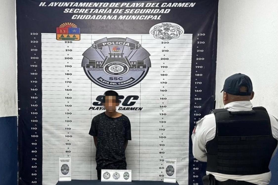 Playa del Carmen, Quintana Roo a 12 de julio de 2025. La Secretaría de Seguridad Ciudadana de Playa del Carmen aseguró a una persona por presunta desobediencia y resistencia de particulares en la colonia Zazil-Ha.