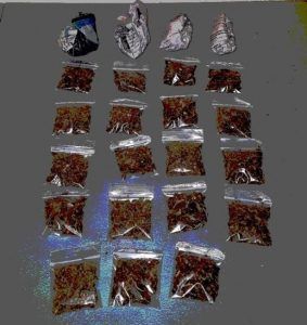 Al realizarle una inspección a su persona se le aseguró el cigarrillo, en la bolsa delante de la bermuda se le encontró diecinueve bolsitas que contienen hierva verde y seca con las características propias de la mariguana y cuatro envoltorios en papel periódico que contiene cada uno hierva verde y seca al parecer mariguana.