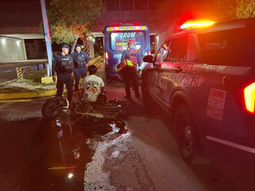 PLAYA DEL CARMEN, Quintana Roo, 29 de septiembre de 2025.- La noche de este sábado, un motociclista en estado de ebriedad provocó una movilización policiaca en el fraccionamiento Villas del Sol, luego de impactarse contra el camellón central de la avenida Cigüeñas y quedar inconsciente por unos minutos.