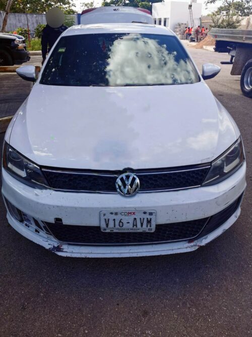 Los hechos ocurrieron cuando a los dos masculinos se les solicitó su alto en la avenida Juárez con avenida 110 en el momento que se transportaban en un vehículo Jetta de color blanco de la marca Volkswagen, con placas registradas en la Ciudad de México por conducir a exceso de velocidad y con vidrios polarizados y ante la conducta agresiva de los sujetos se les solicitó una revisión a la unidad y sus personas.