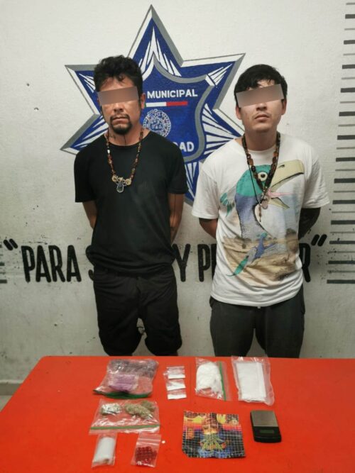 PLAYA DEL CARMEN, Quintana Roo, a 30 de enero.- Por la probable comisión del supuesto delito contra la salud, Carlos “N” de 28 años de edad, originario de EEUU y Luis “N” de 34 años de edad, originario de la Ciudad de México, quienes fueron trasladados a las autoridades correspondientes al tener entre su vehículo, diversas sustancias con características similares a estupefacientes.