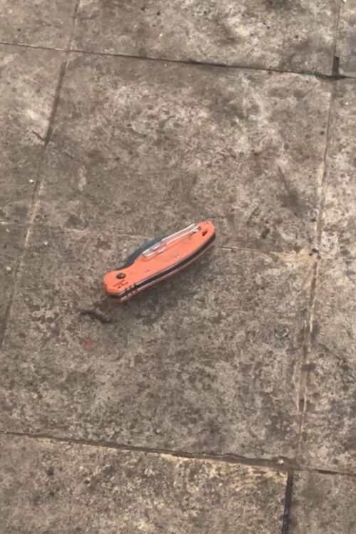 Al alcanzar la calle 2, los trabajadores lograron rodear al individuo, justo cuando una patrulla arribó a la zona. En ese momento, el hombre lanzó al interior de una vivienda tanto el arma blanca como la mochila robada, intentando deshacerse de la evidencia.