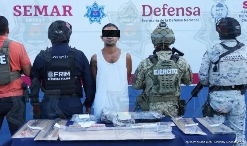 CANCÚN, Quintana Roo, 20 de marzo de 2026.— En el marco del operativo “Blindaje Cancún”, autoridades detuvieron a un hombre presuntamente implicado en delitos contra la salud, en la modalidad de narcomenudeo, durante acciones coordinadas entre Policía Cancún, Guardia Nacional y la Fiscalía General del Estado (FGE).