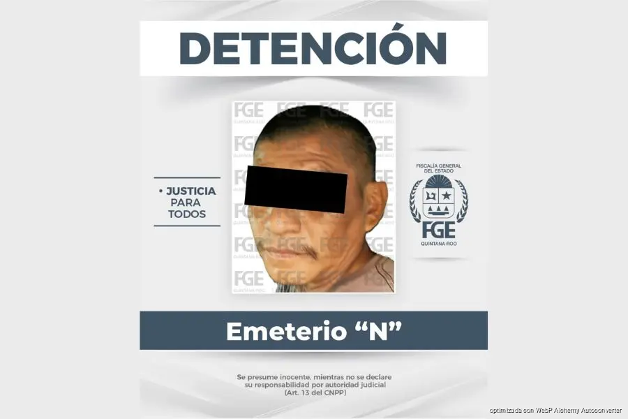 Tulum, 11 de marzo de 2026.- Personal de la Fiscalía General del Estado cumplimentó una orden de aprehensión en contra de Emeterio “N”, por su presunta relación en hechos posiblemente constitutivos de los delitos de violación y delitos de peligro para la vida o la salud de las personas, en agravio de tres víctimas de 14, 11 y 4 años, en este municipio.