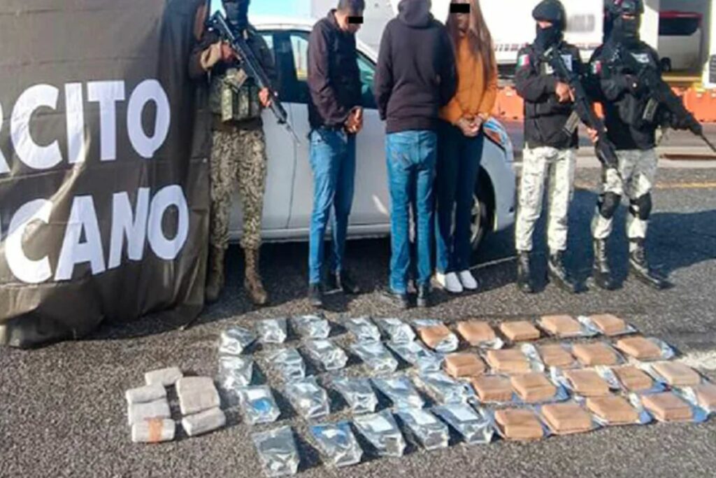 Fuerzas federales detuvieron a tres personas que transportaban 42 kilos de fentanilo y siete kilos de heroína en Baja California.