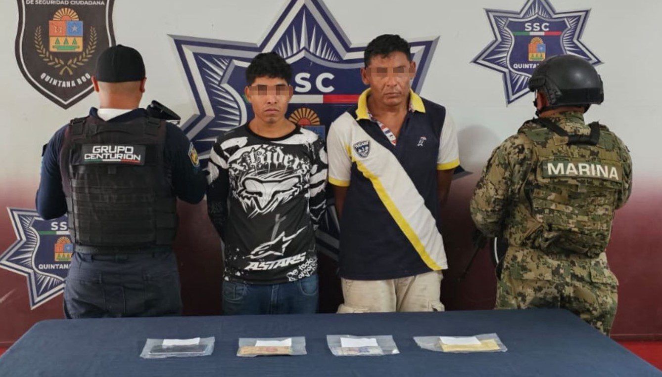 CANCÚN, Quintana Roo, 18 de septiembre de 2025.- Elementos del Grupo Centurión de la Secretaría de Seguridad Ciudadana detuvieron a Juan Luis “N” y Jesús Alberto “N”, señalados como presuntos responsables del delito de extorsión en agravio de trabajadores del sindicato de taxistas.