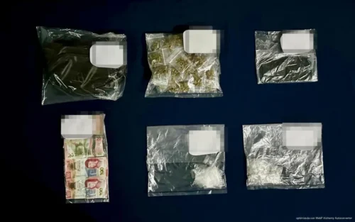 Al realizarle una revisión, le encontraron 69 bolsitas con marihuana, 22 dosis de presunto cristal y 21 envoltorios con sustancia conocida como “piedra”, además de 240 pesos en efectivo, un teléfono celular y una camioneta Chevrolet Tahoe color azul.