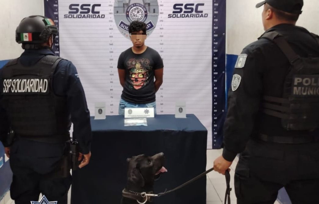 PLAYA DEL CARMEN, Quintana Roo, 06 de Abril del 2024.-La Policía Municipal de Solidaridad aseguró a un sujeto en posesión de posible metanfetamina en el filtro policial ubicado en la carretera federal Playa del Carmen – Cancún, kilómetro 302.