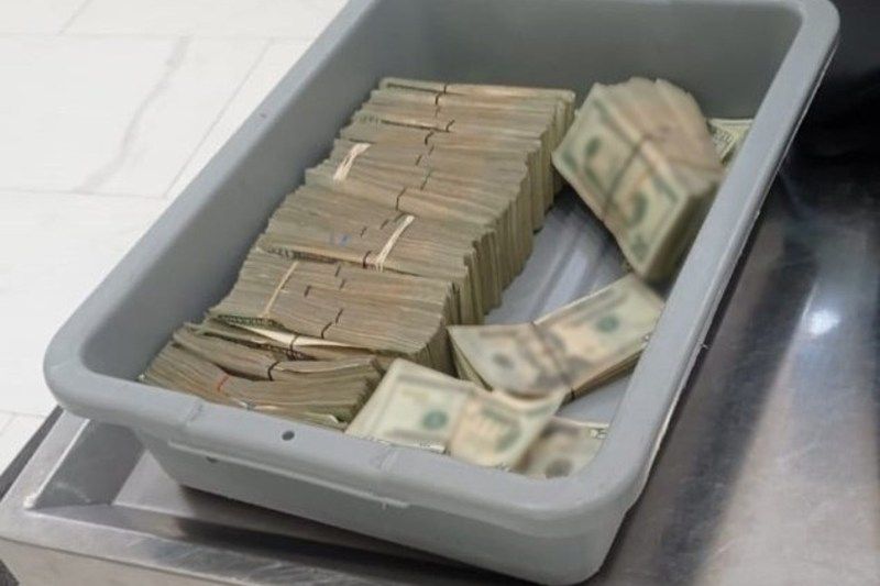 En el área de inspección a pasajeros de la instalación aeroportuaria, a través de una máquina de rayos X, se detectó dentro de una maleta la presencia de varios paquetes, al parecer con billetes, por lo que se solicitó al propietario permitiera realizar una segunda inspección de forma manual.