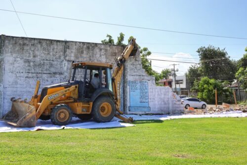 Se trata de una rehabilitación integral profunda que incluye la construcción de una nueva barda, pues la que tenía se encontraba muy deteriorada y en riesgo de colapsar; así como la construcción de una entrada principal y nuevos baños, vestidores, oficinas completas, rehabilitación de porterías y estructuras atrapa balón, gradas techadas, rehabilitación de barandales y enrejado, nuevos reflectores, entre otros trabajos estructurales.
