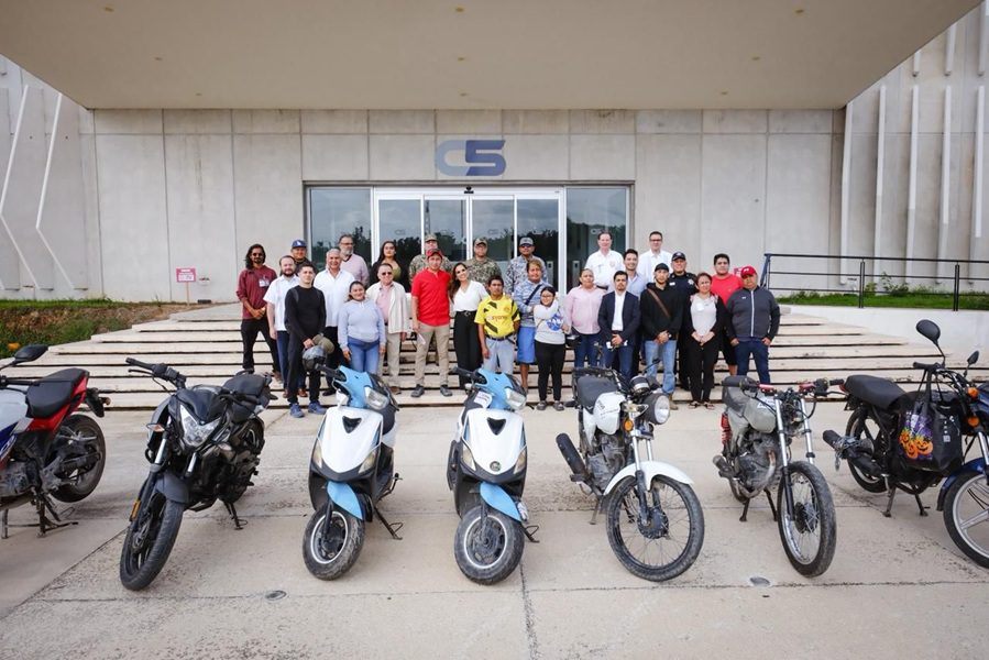 Cancún.- Un total de 12 motocicletas y un vehículo recuperados por la Fiscalía General del Estado fueron entregados a sus legítimos propietarios por la gobernadora Mara Lezama Espinosa junto con integrantes de la Mesa de Seguridad.