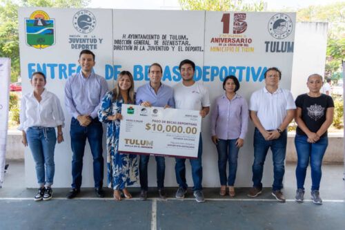 Diego Castañón entrega becas deportivas municipales a Tulumnenses.