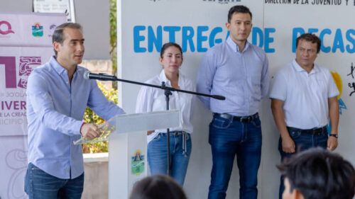 Al encabezar este jueves la entrega de becas a jóvenes que integran las academias deportivas municipales, el munícipe felicitó a los atletas tulumnenses y los conminó a seguir impulsando resultados y representaciones en justas de talla estatal, nacional e internacional. Refrendó el compromiso de su administración para apoyar el deporte al cien por ciento.