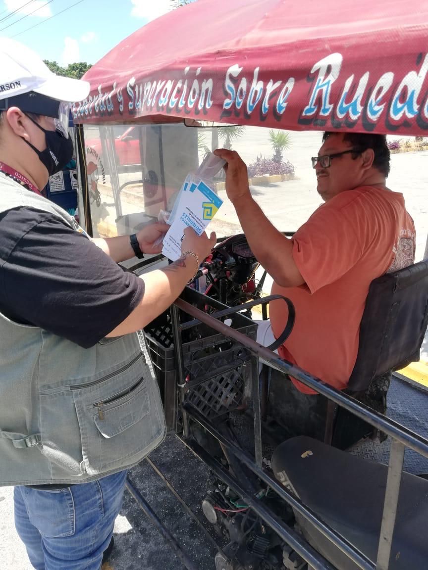 Se capacitó a choferes del Sindicato de Taxistas de Isla Mujeres sobre las medidas de prevención sanitaria, en el cumplimiento a la capacidad máxima de 3 personas en taxis y 8 persona en combis, la obligación del uso de cubrebocas, de realizar una desinfección diaria de las unidades y contar con alcohol en gel.