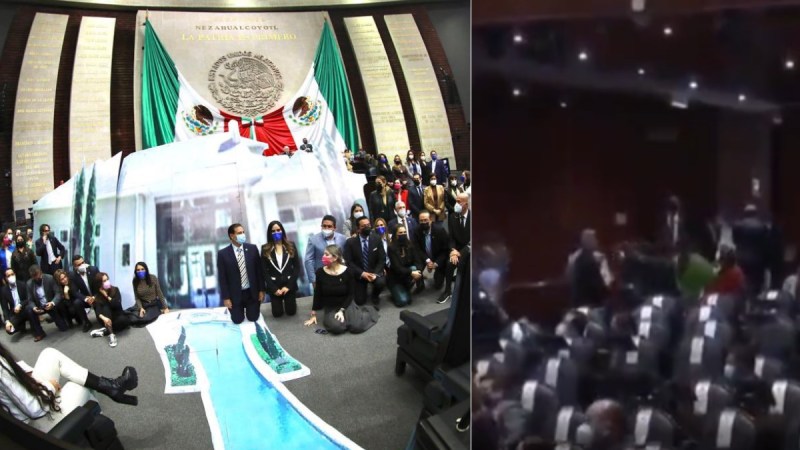 Este jueves diputados de Morena abandonaron el Salón de Plenos de San Lázaro ante la instalación de una maqueta de la llamada ‘Casa Gris‘ en la tribuna.