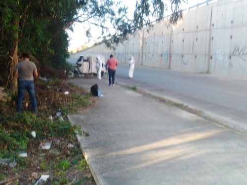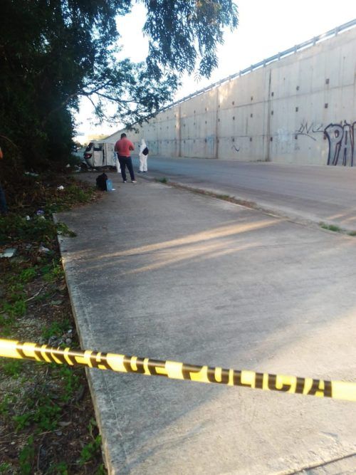PLAYA DEL CARMEN, Quintana Roo, 23 de febrero. – Se reportó el asesinato de dos personas cuyos cuerpos fueron dejados a un lado del puente vehicular sobre la avenida Flor de Ciruelos, y en el mismo lugar un mototaxi con el número económico 460.