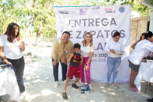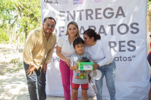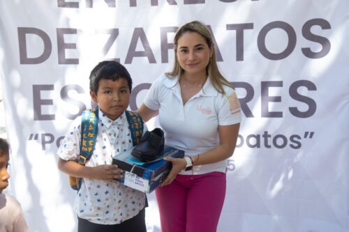 Playa del Carmen, Q. Roo.– Por segundo año consecutivo, la Fundación Sonrisas Contagiosas, que preside la maestra Idania Gamboa Medina, mejoró el inicio de clases de niñas y niños del plantel CONAFE Torres de la Paz, al donar 100 pares de zapatos.