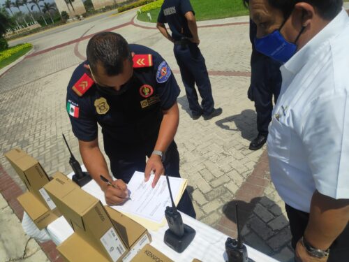 TULUM, Quintana Roo, 11 de mayo. – Bahía Príncipe Riviera Maya Resort refuerza su compromiso con el bienestar de la comunidad, entregó de manos del Director de Seguridad del Complejo seis radios de comunicación digital Kenwwod que servirán para que tengan una mayor comunicación entre ellos, sus equipos de trabajo, autoridades y la ciudadanía para mejorar su operación.